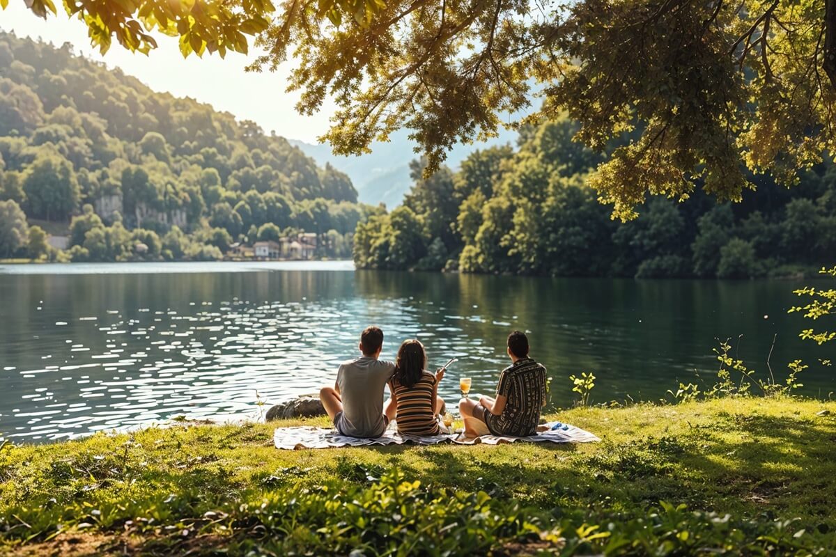 Relax beside shimmering waters, ideal for kayaking, fishing.